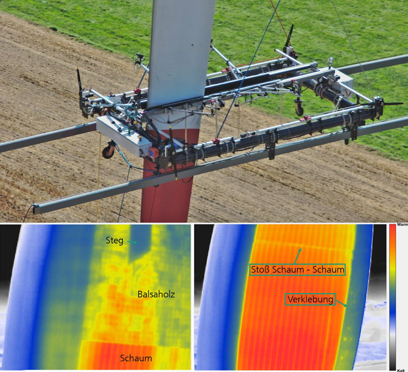 Für ein gezieltes Recycling der verschiedenen Materialien im Rotorblatt ist es notwendig, deren Lage in den Blattschalen genau zu kennen. Diese Aufgabe soll mittels einer teilautomatisierten Inspektionsplattform gelöst werden. Sie macht mit Hilfe von Thermografiekameras das Innere der Blattschalen sichtbar und erstellt eine digitale Karte der im Blatt verbauten Materialien.